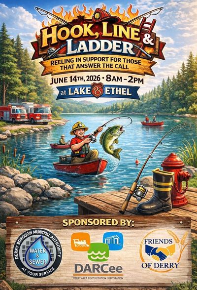 Join us for the Hook, Line & Ladder Fishing Day at Lake Ethel on June 14, 2026 from 8 AM – 2 PM, a community fishing event supporting those who answer the call. Sponsored by the Derry Area Revitalization Corporation, Friends of Derry, and the Derry Borough Municipal Authority, this event brings together anglers of all ages for a day of fishing, community, and friendly competition at beautiful Lake Ethel.